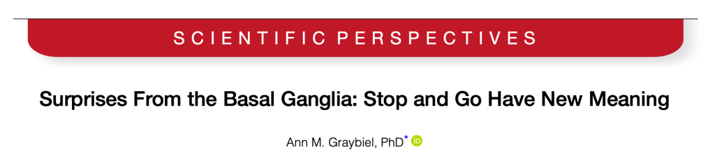 Graybiel, A. M. (2025). Surprises from the basal ganglia: Stop and go have new meaning. Movement Disorders. Advance online publication. https://doi.org/10.1002/mds.70008