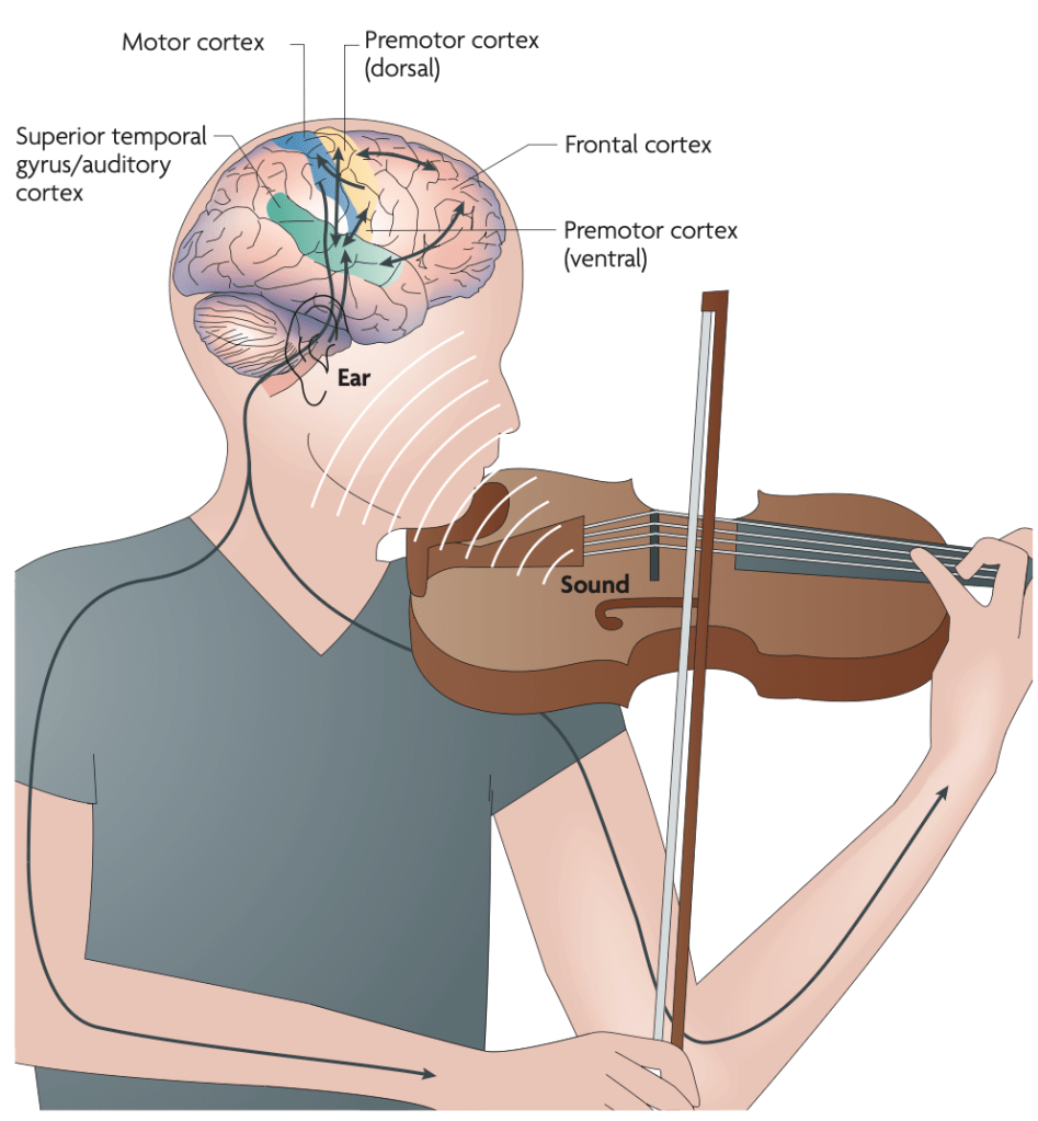 Image credit: Zatorre RJ, Chen JL, Penhune VB. When the brain plays music: auditory–motor interactions in music perception and production. Nat Rev Neurosci. 2007;8(7):547-558. doi:10.1038/nrn2152