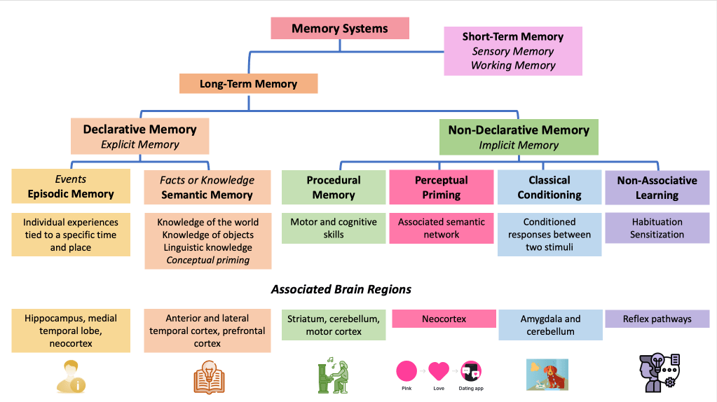 Memory systems can be divided, at a first level, into short-term memory and long-term memory.